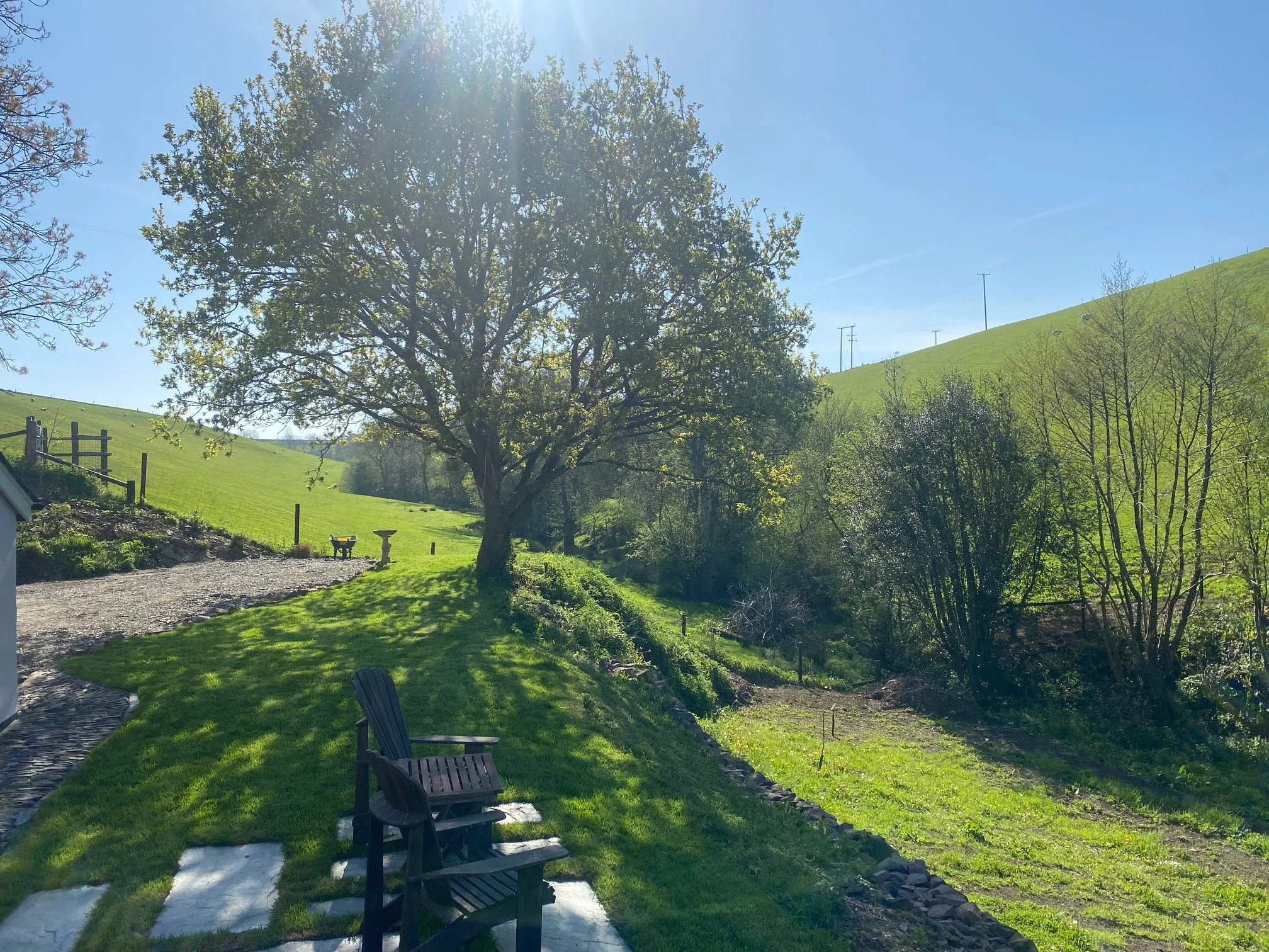 From the upper lawn, countryside views open up across the valley, while the lower garden areas offer intimate spots for reading or simply listening to the water flow. The entire grounds feel like your own private corner of rural Devon, with no neighbours or passing traffic to disturb the tranquillity.